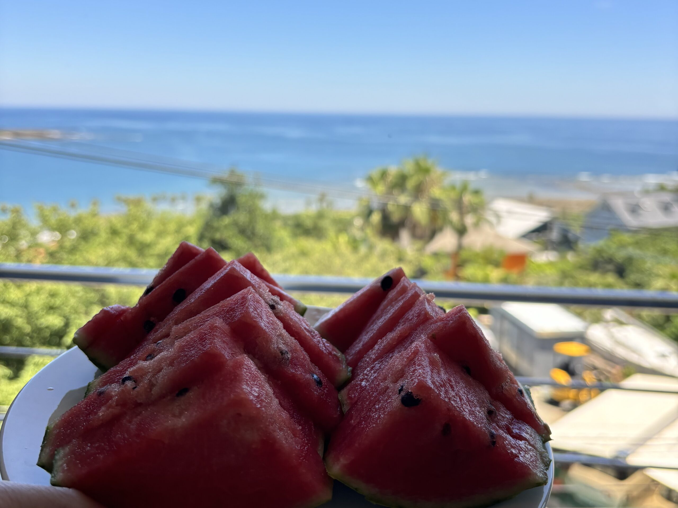 7:30 フルーツを持って海へお散歩、のんびり朝ごはん
